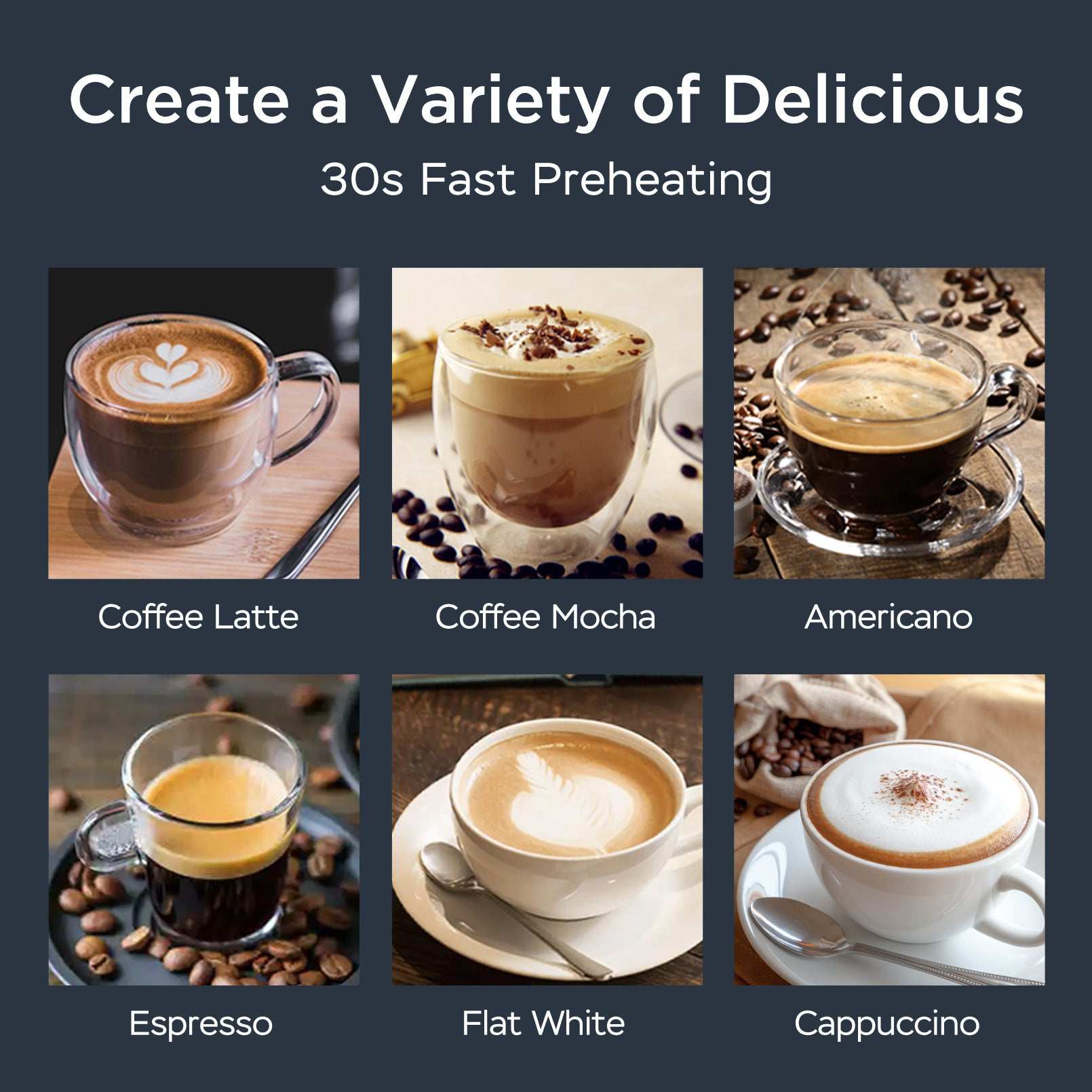 - 【POWERFUL MILK STEAMER】Espresso machine with milk frother has steady steam wand turns milk into silky smooth microfoam. Latte machine is convenient for you to create latte, cappuccino, Mocha or plain white coffee art at home or office. Removable frothing nozzle makes cleaning easy.